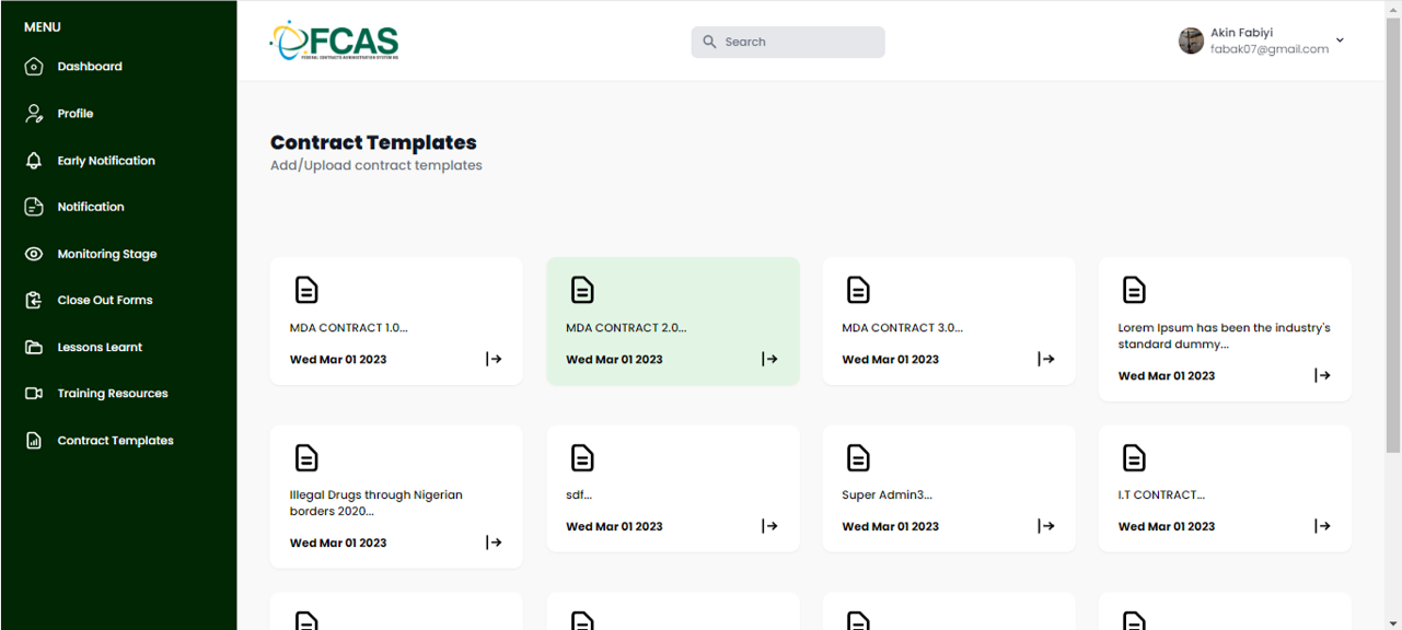 In contracting, the kind of contractor poses a lot of risk to the contract process. Therefore, it is of paramount importance that the contractor is reviewed before choosing. The FCAS gives a platform where the profile and capabilities of specific project contractors are available to the MDAs. In the contractor performance evaluation process, the following are considered: - The area of expertise of the contractor - The capabilities of the contractor are accessed - Rate of performance and effectiveness in previous projects executed - Consistency in value and organisation
